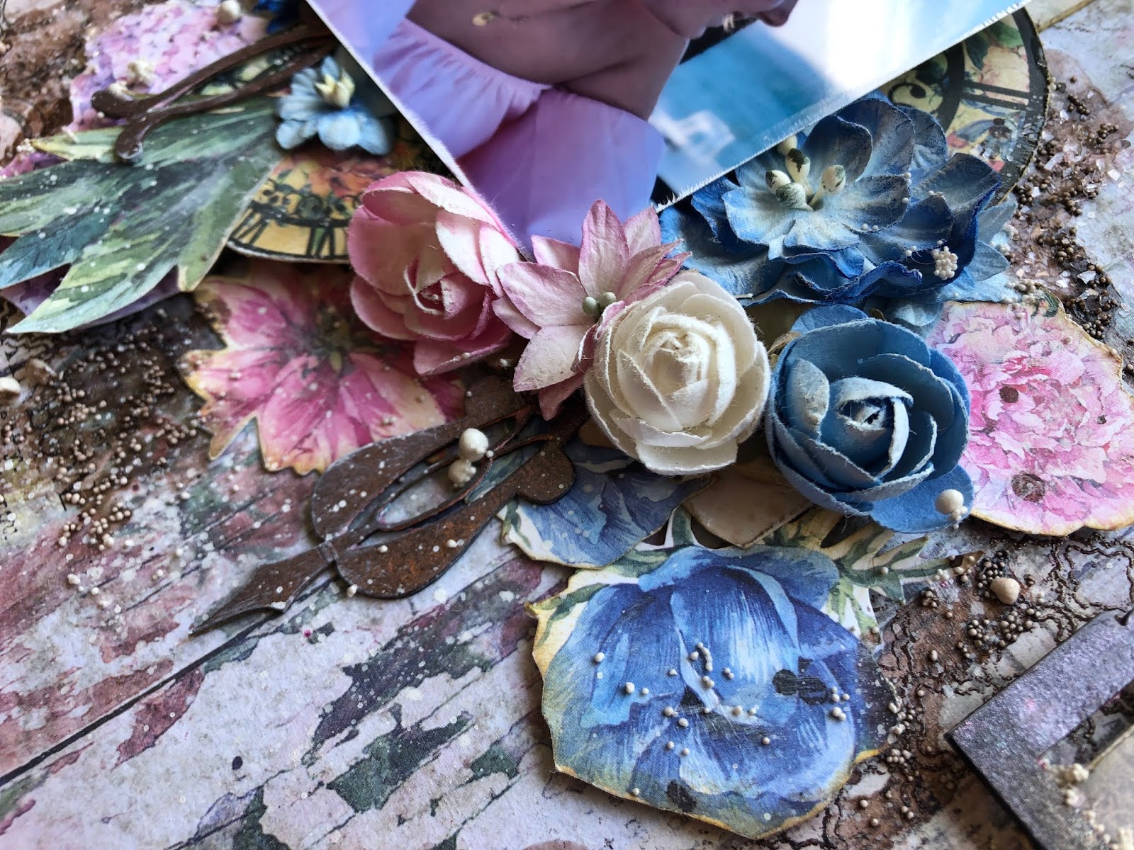 Comme le papier est déjà bien décoré, je n’ai ajouté que quelques petits éléments pour compléter sans trop en faire.