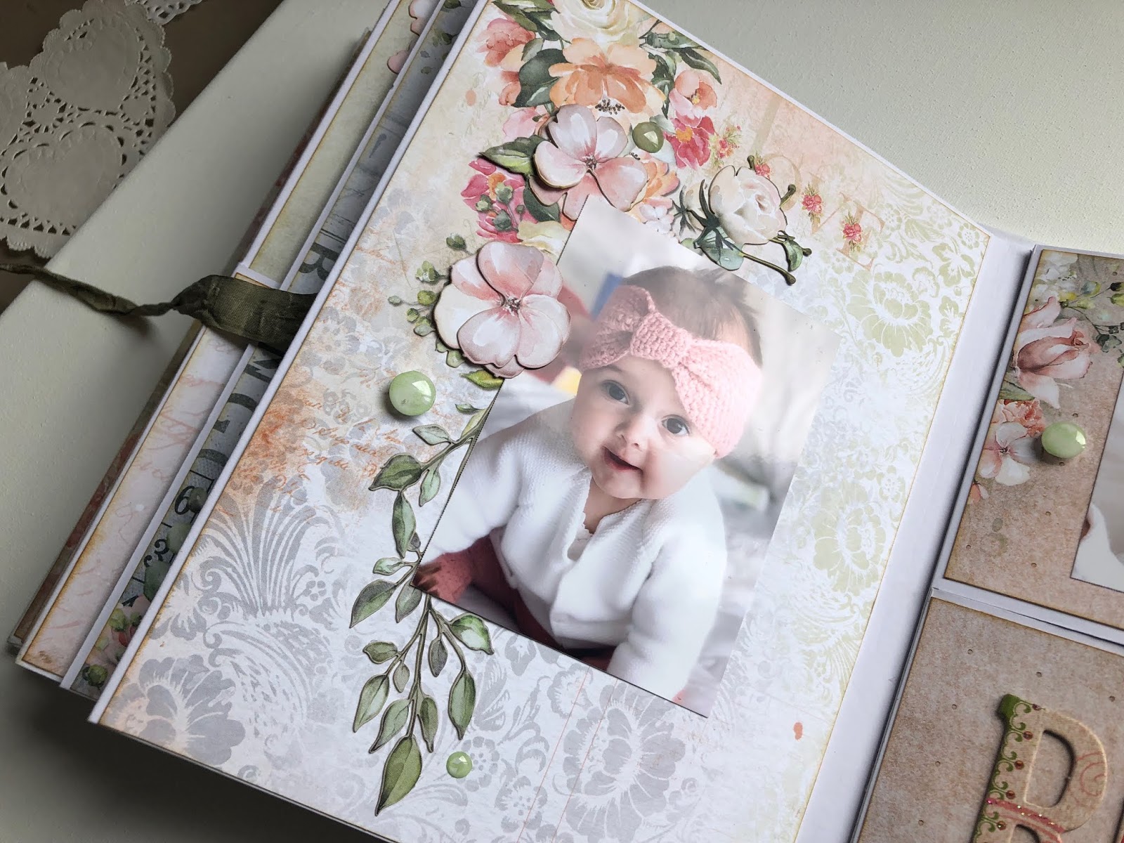 La photo met en scène ma petite-fille Mia, prise il y a déjà presque 11 ans, mais que j’ai trouvée parfaite pour s’accorder avec les teintes délicates de ce papier.